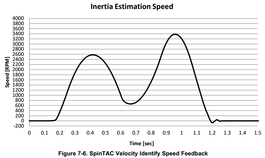 During inertia identification, the motor spins in a positive direction and will then spin briefly in a negative direction.
