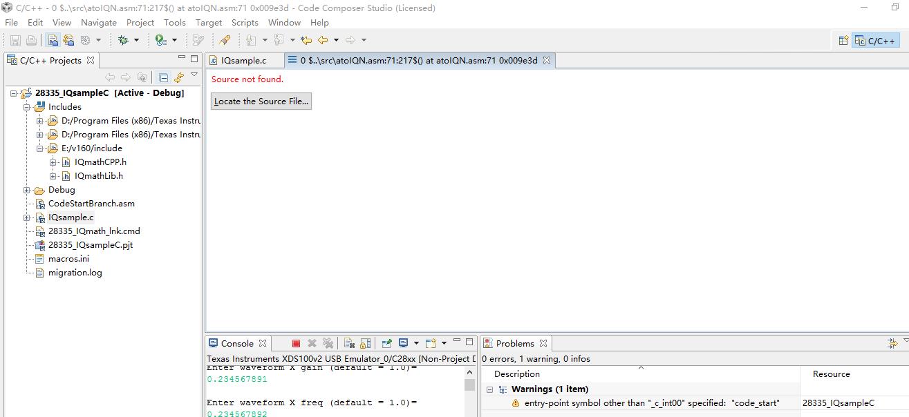在prj中添加 IQmathlib.h、IQmath_fpu32.lib、rts2800_fpu32.lib以及IQmath.gel 三个文件;同时,将Build Properties ——C2000 Compiler ——Runtime Model Options中的 specify flaoting point support 改为fpu32;在main函数前添加 #include "IQmathlib.h",long GlobalQ = GLOBAL_Q 。