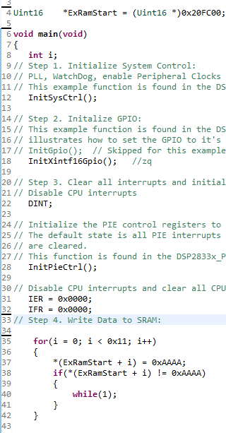 我把cmd定义一个空间,指定外部ram的存储空间不就好了?如何使zone7使能呢,除了初始化xintf16?为什么用简单的指针写数据却出现错误呢?