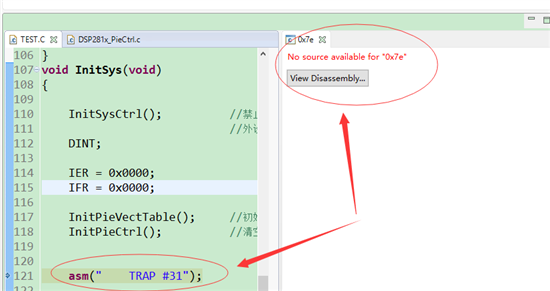 主函数中只有一个InitSys(),执行TRAP指令后不进相应的中断,提示那个0x7e,就什么都没有了。