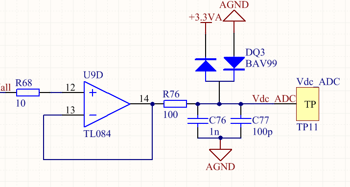 因为DSP控制板采样有问题,所以进行一步一步调试。给DSP正常供电后,直接给其模拟输入口和模拟地(模拟地与ADCLO相连)之间输入0-3V电压信号,可以正常采样,采样精度尚可。这证明非软件问题和供电问题。然而将此模拟输入电压经过一个运放跟随和RC滤波后再输入给AD口(这是因为完整控制板中,信号会经过一系列调理滤波再输入AD口的),此时采样就出问题了。问题表现在采样数值完全不对,而且最高数值为2000多一点,不到2100,而不是4095。测量过运放跟随和RC滤波后的电压信号,很正常,这说明非运放硬件问题。自己想了半天也不知道什么问题,希望大家能帮助我 。另外请问28335的AD模拟输入口有输入电流大小的要求吗?