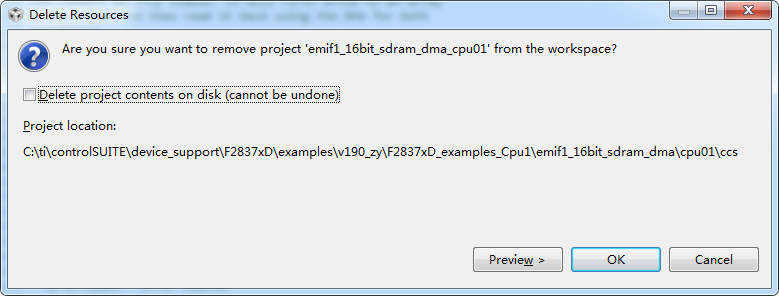 使用ccs6导入C:\ti\controlSUITE\device_support\F2837xD\v190\F2837xD_examples_Cpu1\emif1_16bit_asram例程,然后在例程上做了相应的修改,点击了保存,保存后选择delete project。再次从C:\ti\controlSUITE\device_support\F2837xD\v190\F2837xD_examples_Cpu1\emif1_16bit_asram导入,显示的是没有修改过的文件。请问要怎么复原修改过的文件?