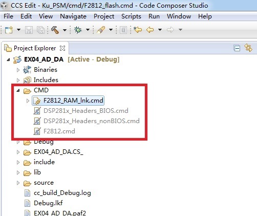 大家好!本人正在使用F2812,开发环境是CCS6.0。众所周知,F2812在调试的时候用“F2812_RAM_lnk.cmd”,即程序直接在RAM里面运行;交付前用"F2812.cmd"将程序固话到FLASH中。如果将这两个cmd文件同时添加到文件系统中,会报空间分配重复的错误。但在例程中,发现文件系统变成这样: