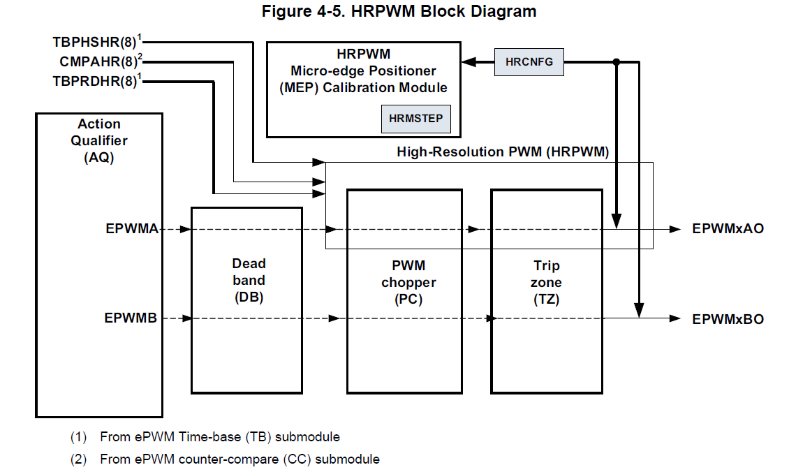 28069的HRPWM 是只能在PWMA一路上高精度输出,另一路PWMB只能作为普通PWM输出。手册上有些如果PWMB作为PWMA的反向输出的话,有一定误差,这个误差是怎么回事呢,是指输出到引脚上的误差还是PWM内部就有这个误差,那么HRPWM到底能否输出高精度的PWM呢?