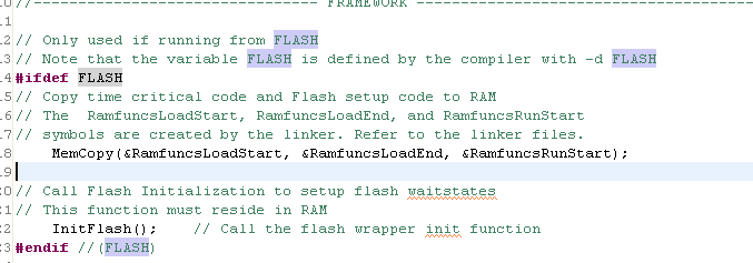 如果在RAM里面运行,预编译请不要定义FLASH,因为RAM的CMD文件里面,没有定义那几个量