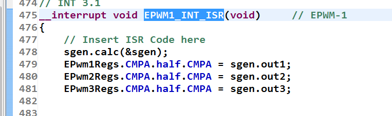 第一次使用C28X信号生成库,我本想做一个三相的SPWM生成。所以会用到正弦信号。在前期我自己计算得到了三个数组分别代表三相A/B/C。打出的PWM不错。经过示波器的滤波后可以得到50Hz的三相正弦信号(三相的相移互差120度误差在1度左右)。可是我在用SGENT_3模块时,也能产生SPWM。但是A/B/C三相的相移不在是严格的120度了。相移是一直变化的,大概在60度到150度左右变化。反正效果不是很好。我是个刚接触DSP的新手。能告诉我,我的问题大概出在那里么?因为我用的是双核的DSP(F28M35H)。所以文档上的示例,我也没有严格的遵循。