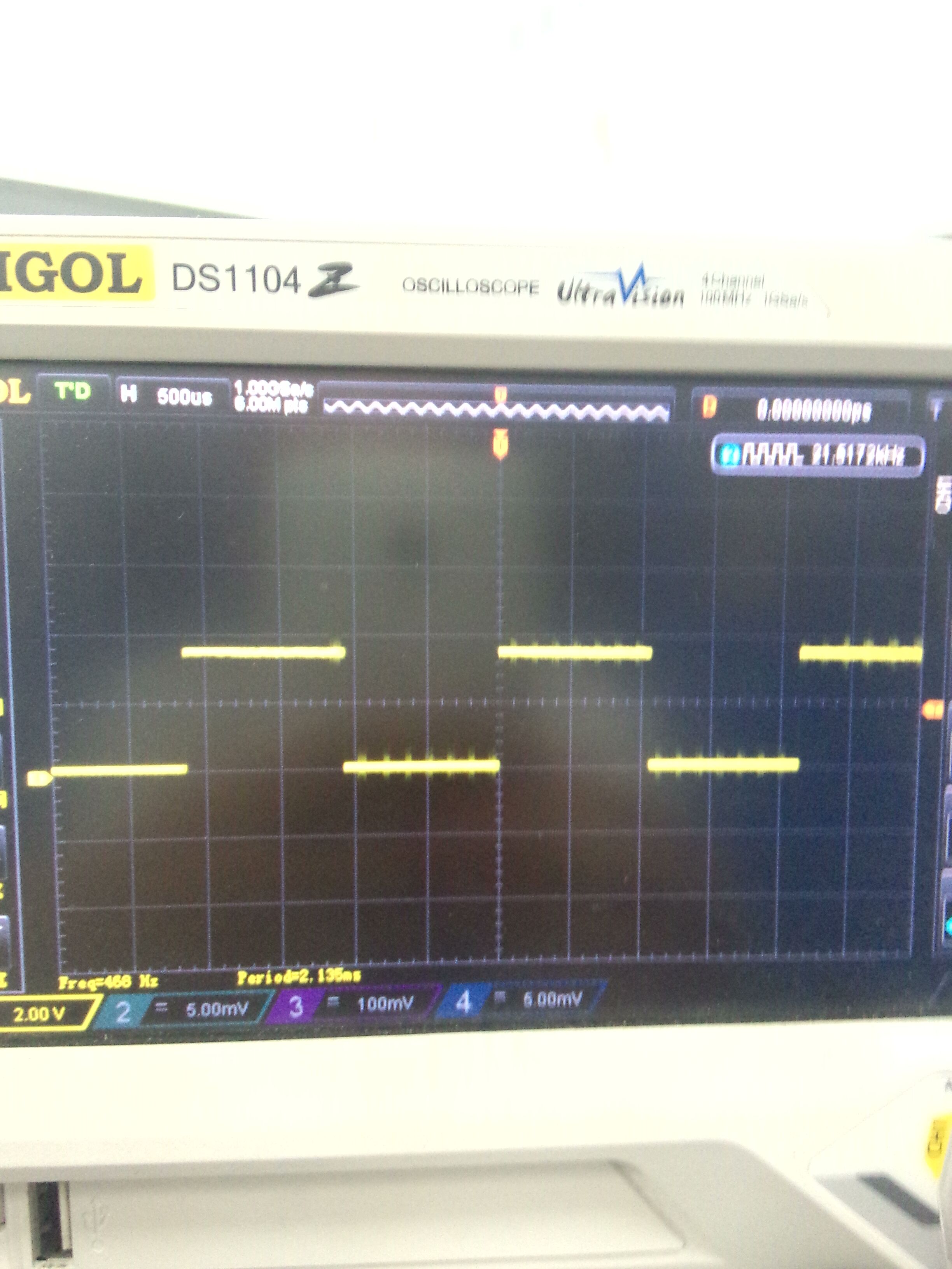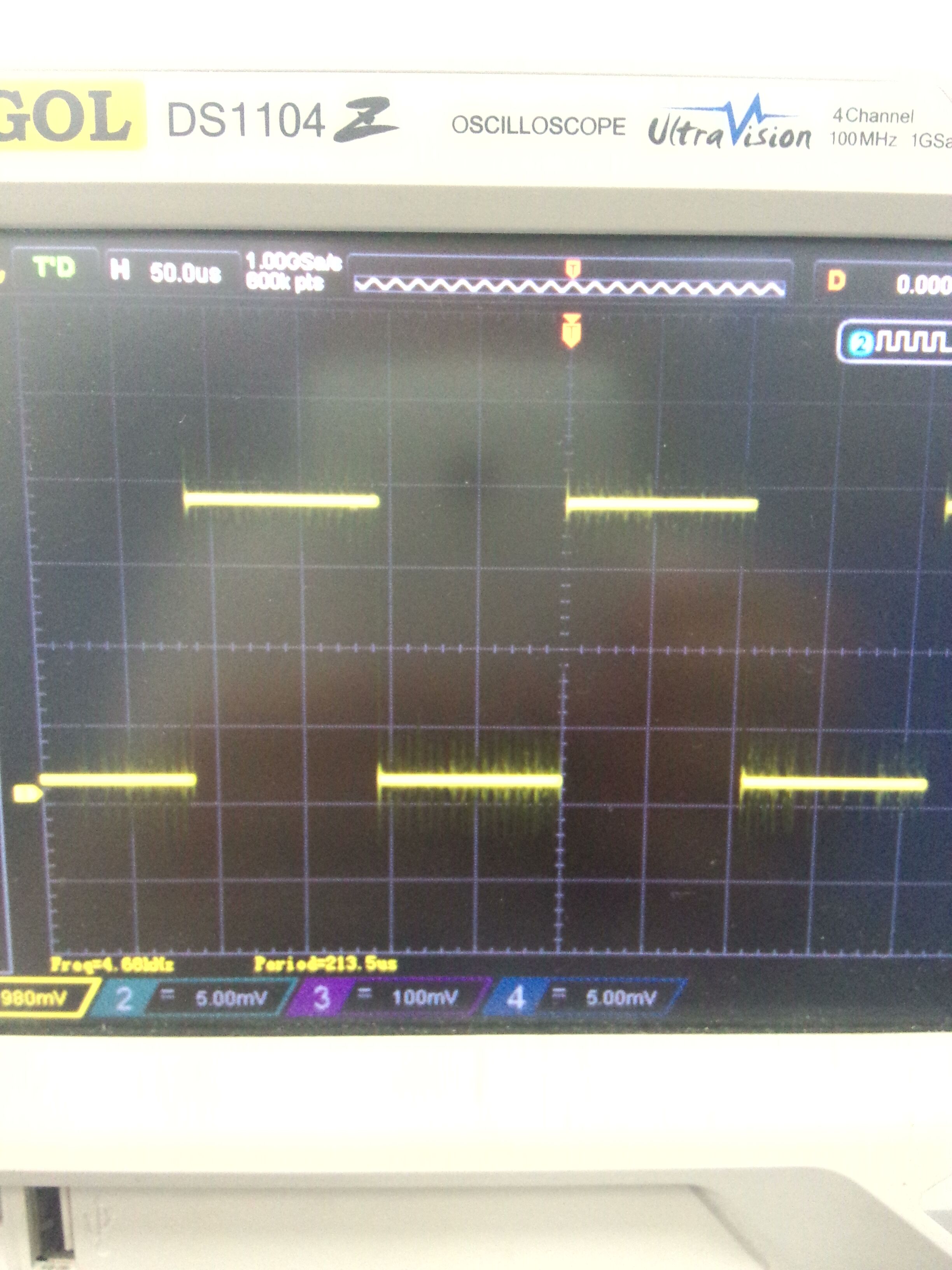 会发现波形都有毛刺, 然后我不用Epwm模块,直接把引脚配置为GPIO,通过引脚置1清0产生方波,发现也有毛刺