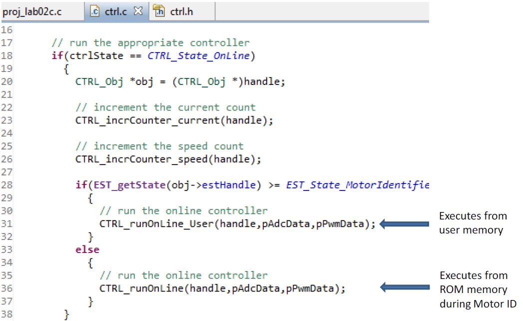 lab 2b是InstaSPIN-FOC的最小执行,只有FAST部分在ROM中执行。但lab guide上说CTRL_runOnLine在ROM里执行,而CTRL_runOnLine_User在用户RAM里执行呢?