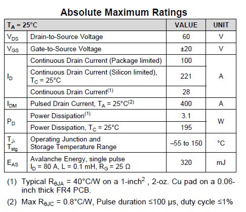 1.这里Id有三个参数:封装限制:100A;25度硅材料限制:221A;第三个参数28A是什么概念?选型时是按照三个参数最小值选型??