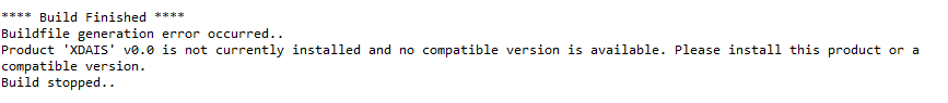 Product 'XDAIS' v0.0 is not currently installed and no compatible version is available. Please install this product or a compatible version.