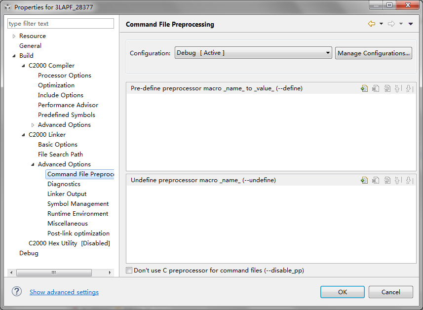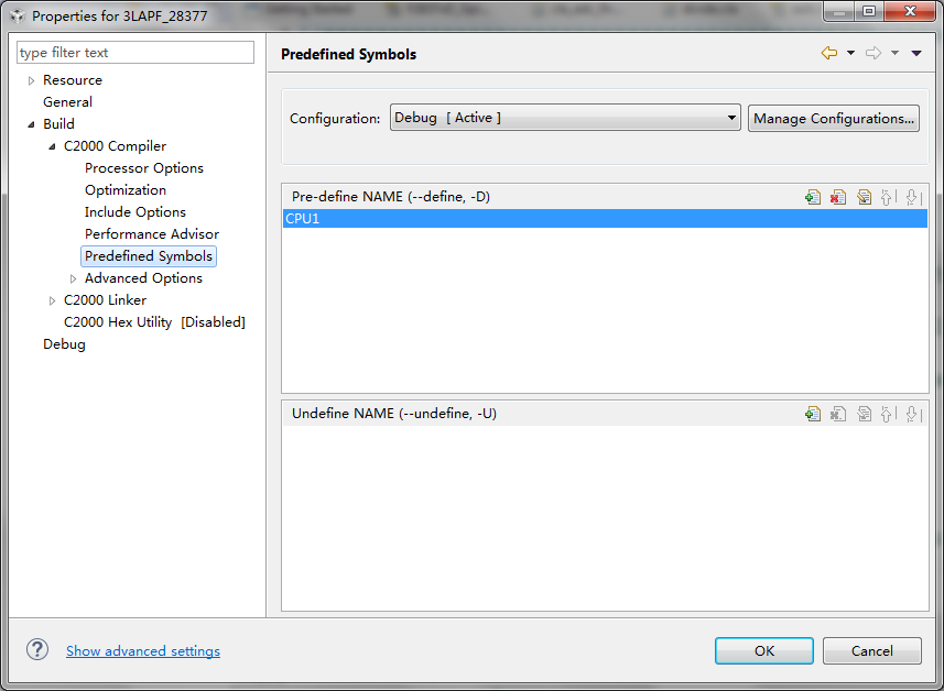 我CMD文件中有个#ifdef CLA_C的地方,我在predefined symbols里面定义一个CLA_C,CMD中#ifdef CLA_C的部分是不起作用的,我在