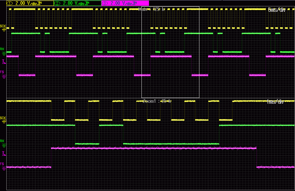 经测试,当FWID = 0-7时,帧同步脉宽都是9个时钟,这和描述不一样;