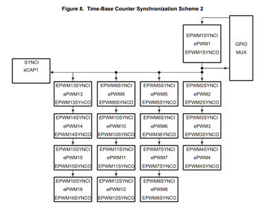 PWM1同步输出信号可否跳过PWM2用作PWM3的同步输入,或者跳过前面几个pwm1输出的同步信号直接给后面几个pwm模块用?关于这些同步信号的工作过程是什么样的,能否详细说明?