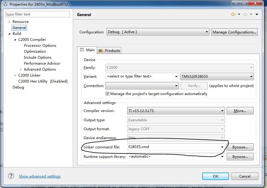 新建的工程 选F28035.cmd编译出错,但是选28035_RAM_ink.cmd编译正常。我的程序里面就只有一个main.C,而且里面啥都没有写啊,更没有定义什么啊。这是什么原因,要怎么修改?
