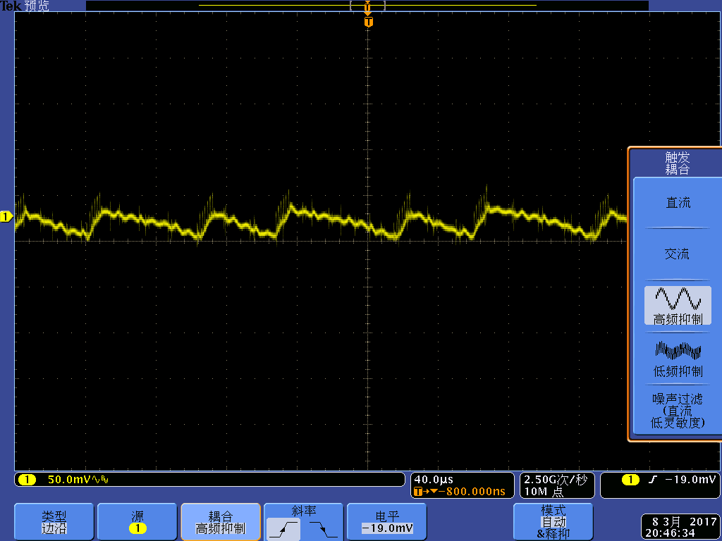 自己测量的波形图,示波器设置------交流耦合,带宽限制20M,短地线