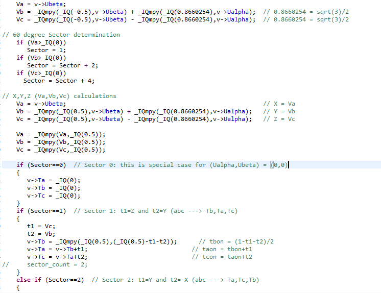 另外我的思路是(以A相为例),由Ubeta和Ualpha得到Ta后,则CMPA=Ta/Ts*PRD,不断更新改变CMPA值,从而输出A相的SVPWM,是否正确呢?。。关键还是想不通Uref该取多少合适?Uref=1吗?