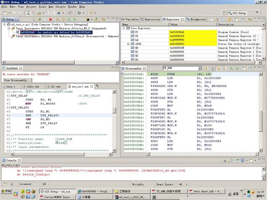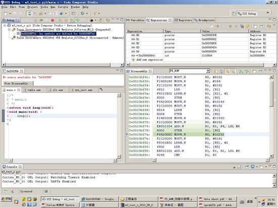 单步到上图的PC位置后,再assembly step into就进入下图的PC位置0x010030A0了,而上图后面的几条指令都没有跳转的。