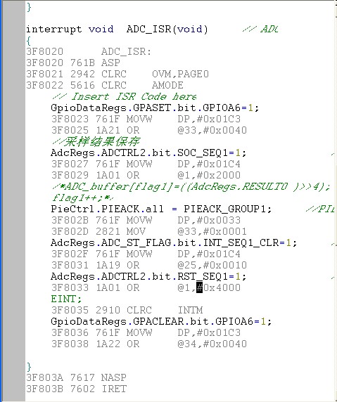 PieCtrl.PIEACK.all=0x0001; AdcRegs.ADC_ST_FLAG.bit.INT_SEQ1_CLR=1; AdcRegs.ADCTRL2.bit.SOC_SEQ1=1;