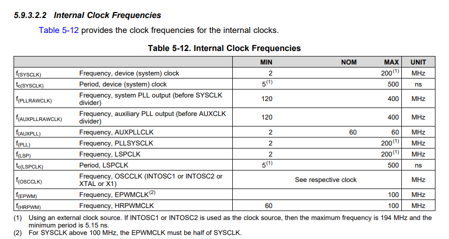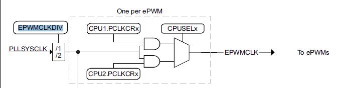 ePWM1的时钟频率应该是相对于系统主频不分频的。但是测试后发现ePWM的时钟频率不是200MHz而是100MHz,请问这是为什么呢。