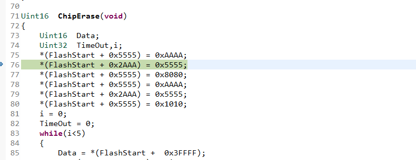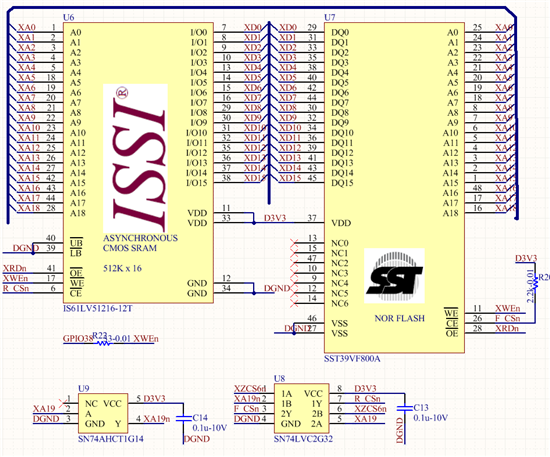 对28335的进行外部flash和SRAM扩展,程序执行到76行就停了,这是因为什么原因?是因为控制线和数据线,地址线设计的有问题?