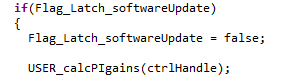 在程序中我没有找到会再重新对PI参数进行初始化的地方,所以不明白为什么程序运行过程中Kp会在初始化值和经过母线电压补偿后的值之间跳动。是我程序中根据母线电压对Kp的修改只能在PI控制程序中生效?结束PI控制后又恢复到初始值?但程序是对指针值进行修改,而且观测的为全局变量,修改值应该是一直生效的啊?