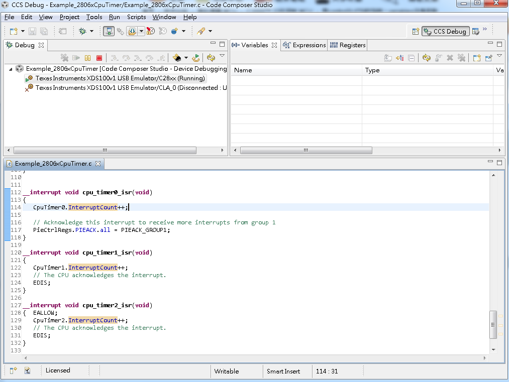 我用F28069v135的Cpu Timer (cpu_timer)範例,要我在variables查看