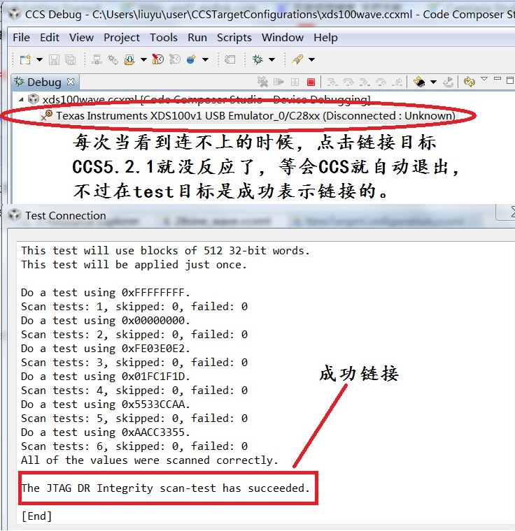 您好!我正在跟你们公司合作写一本有关Piccolo DSP的书籍,由于是第一次使用CCS5.2(原来都是使用CCS3.3的)。感觉总是有的搞不定,前天收到你们大学部的同志给我送的launchpad和28069 experimenter kit ,自己使用controlSUITE的例子,debuger时CCS都连不上,等会就自动退出了,请问到底是我的CCS5.2.1软件的问题,还是没有安装XDS100驱动?通过测试好像仿真器是联通了的。请看附件的错误图示。谢谢!