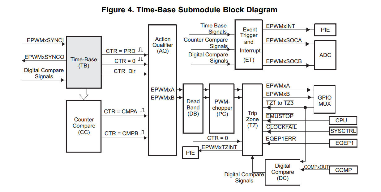 问题: 因为死区寄存器DBFED =DBRED 是没有Shadow的。而死区更新时刻与TBCTR当前值不做任何关联。即,DBRED DBFED更新时,TBCTR可以是任何值。因此,担心变动死区时,会对驱动逻辑有影响。