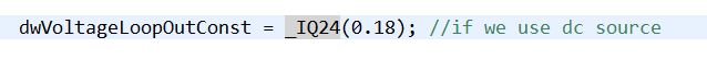 我在controlsuite里的太阳能逆变器的程序中看到如下语句,该语句应用在没有电压外环的情况,将电压外环的值设置成常数,作为电流内换的参考给定