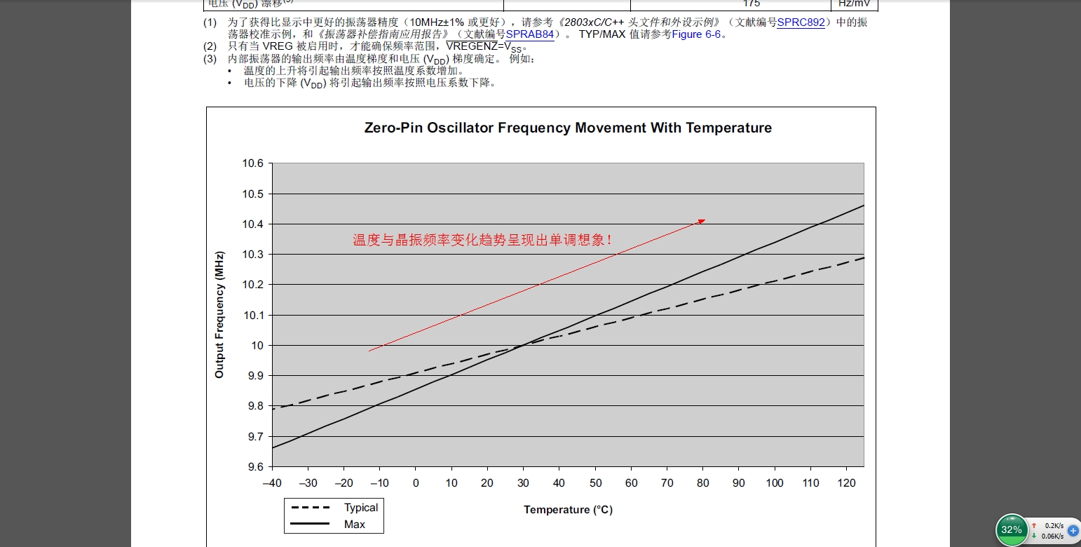 然后再借助你们TI的内部晶振校准例程改善补偿了低温晶振频率的漂移,但是再测试高温50℃时又出现了偏移想象。