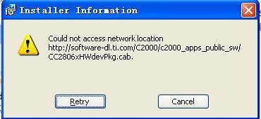 请检查一下你的网速是否有问题,我安装时也碰到过这样的问题,如果网速不稳定,就多试几下“Retry”。如果还是不行的话,建议删除掉C:\TI\ControlSUITE目录下所有东西,重新安装试一下。