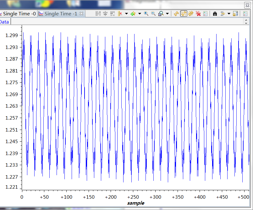最近,用28335的ADC采样500kHz的正弦信号,采样得到的幅值一直不正确,把频率降低到10kHz后才能接近输入信号,如图:
