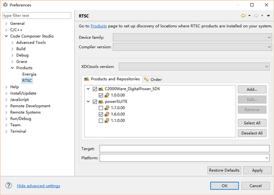 参考TI设计的interleaved CCM TPPFC (TIDM-1007) 的CCS工程,在CCS 7的resource exploer中找到该历程,点击Run F280049M Project(如图1)时提示错误(如图2),请问怎么解决?我已经装了powerSuite,在CCS的Window->Preferences中也能看见(如图3).