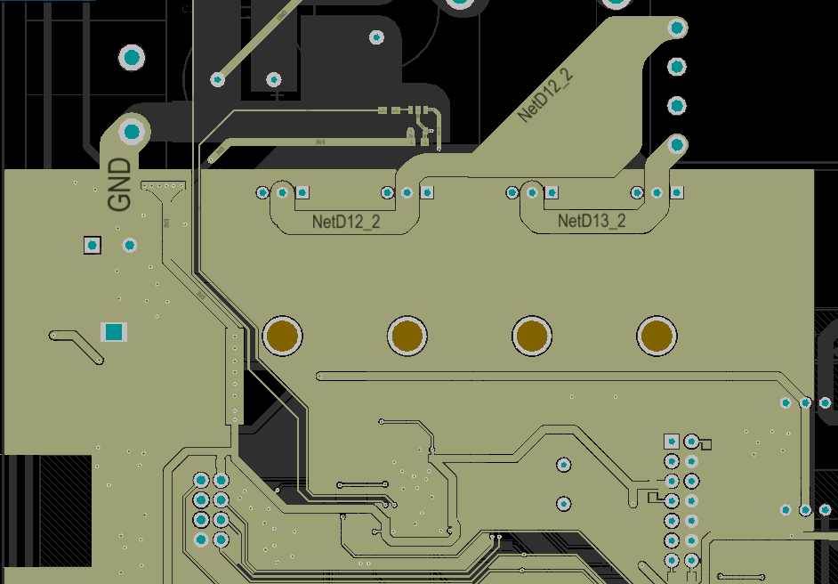 我用示波器观察过复位引脚和电源的波形,没有发现明显毛刺,在走线上也采用了功率地和信号地分开走线、单点接地的方式,附上PCB图(PCB比较渣,各位轻拍)
