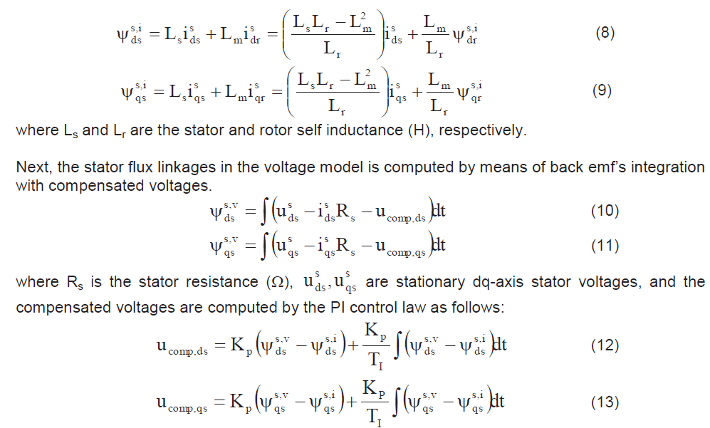 这是我在阅读 异步电机无传感磁链定向程序,ACI_FE模块中计算转子磁场角度程序原理的一部分。在这个程序中,它所使用的原理与课本上的原理有些出入,课本上是这样计算的
