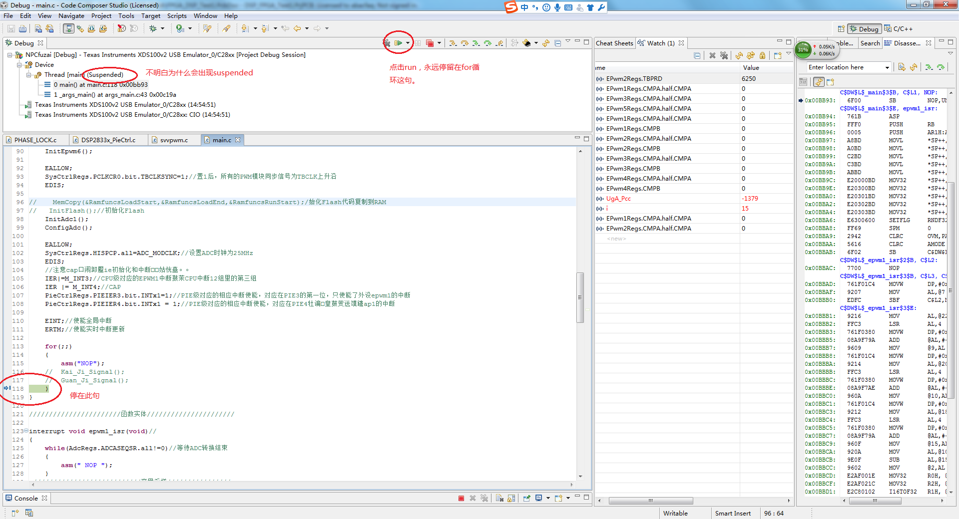 CCS v4.2中运行至某句就不再执行下一步,始终在那一句