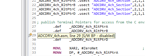这样的话,我是不是不能在汇编ADCDRV_4ch_INIT .macro m,n,p,q这个中断执行函数中设置单步运行。因为不管在那里设置断点都是现实disabled。