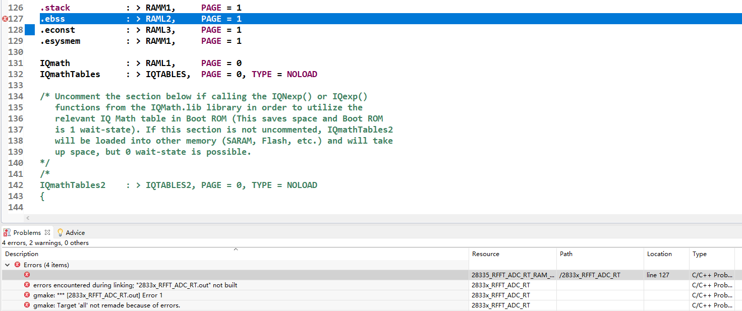 我在使用controlsuite中2833X_RFFT_ADC_RT例程时,将原来的FFT_STAGE从9改为10,即做1024点的实数fft,build显示.ebss错误,应该是link.cmd的问题,不知怎么修改,求指点