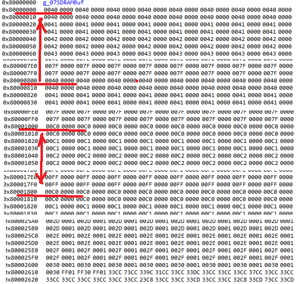 单独写地址0x80000000 ~ 0x800007FF处时,写入的数据正常,