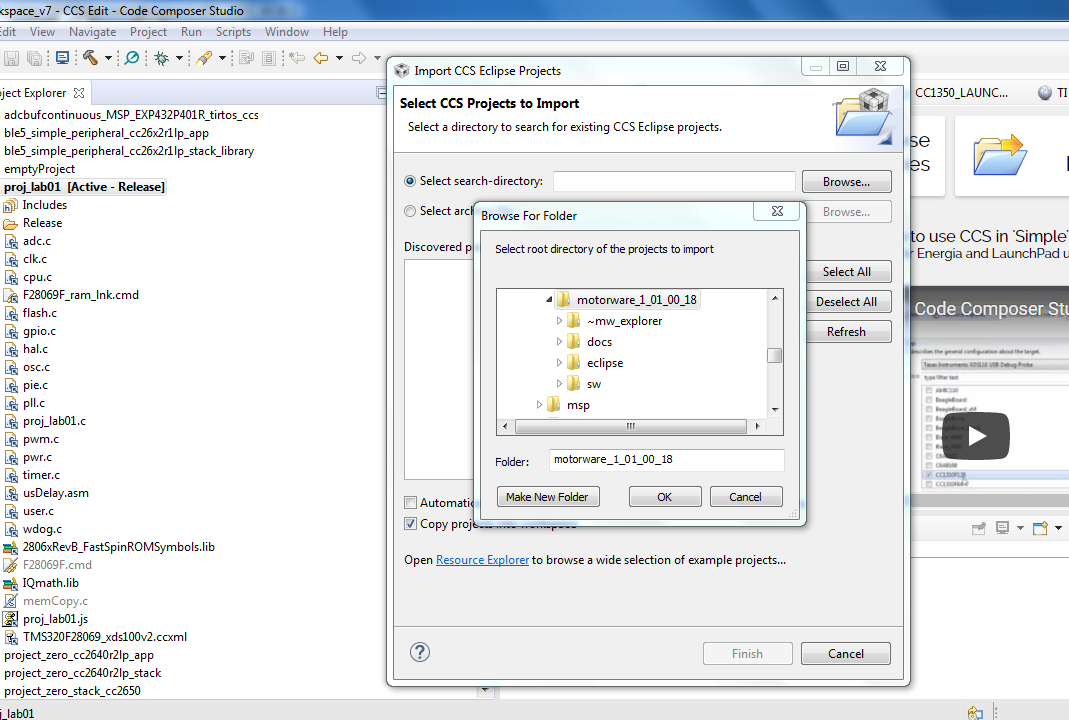 不太确定是不是您的ccs软件安装的问题,您试下file->import能否打开,如下图: