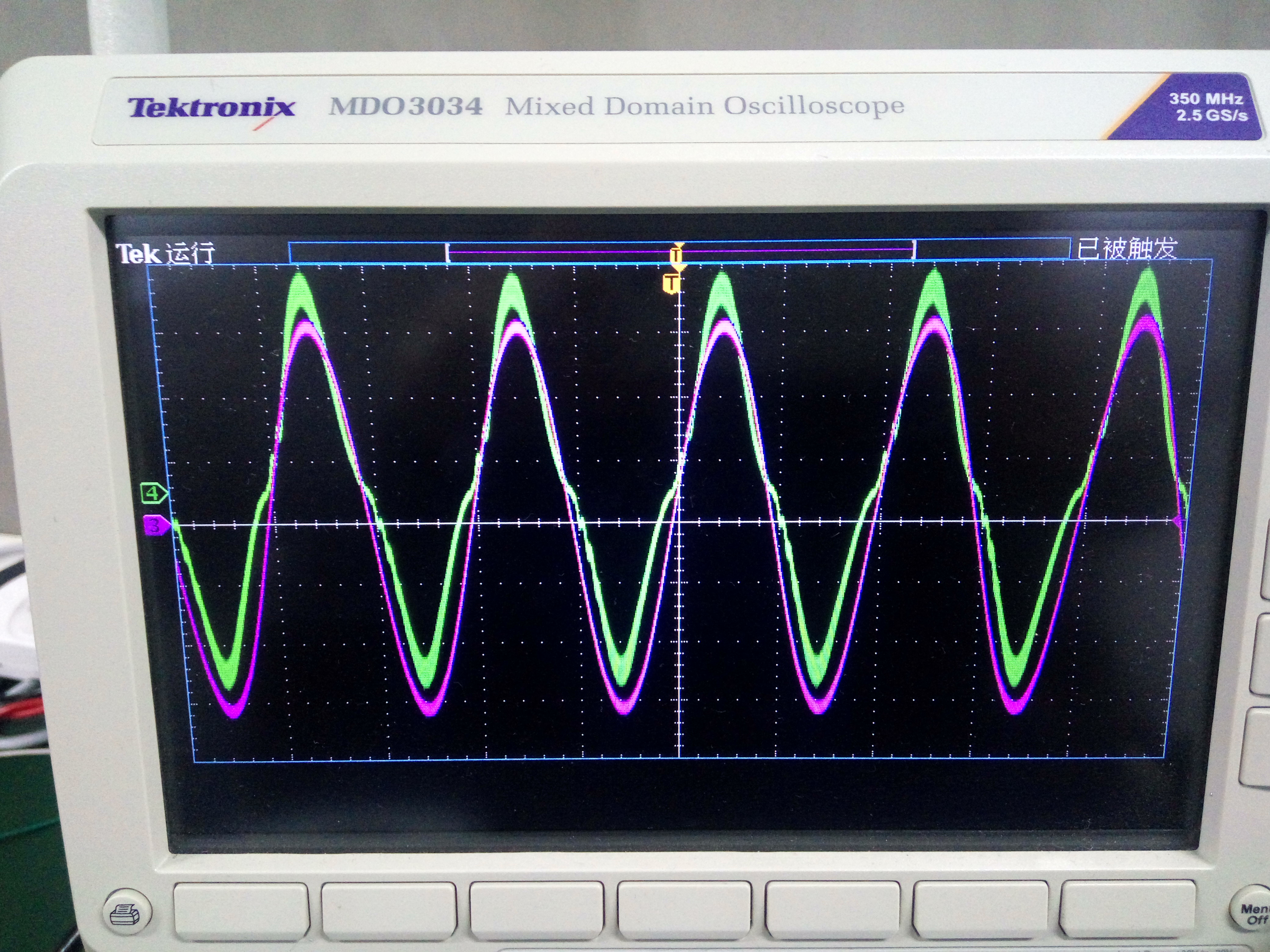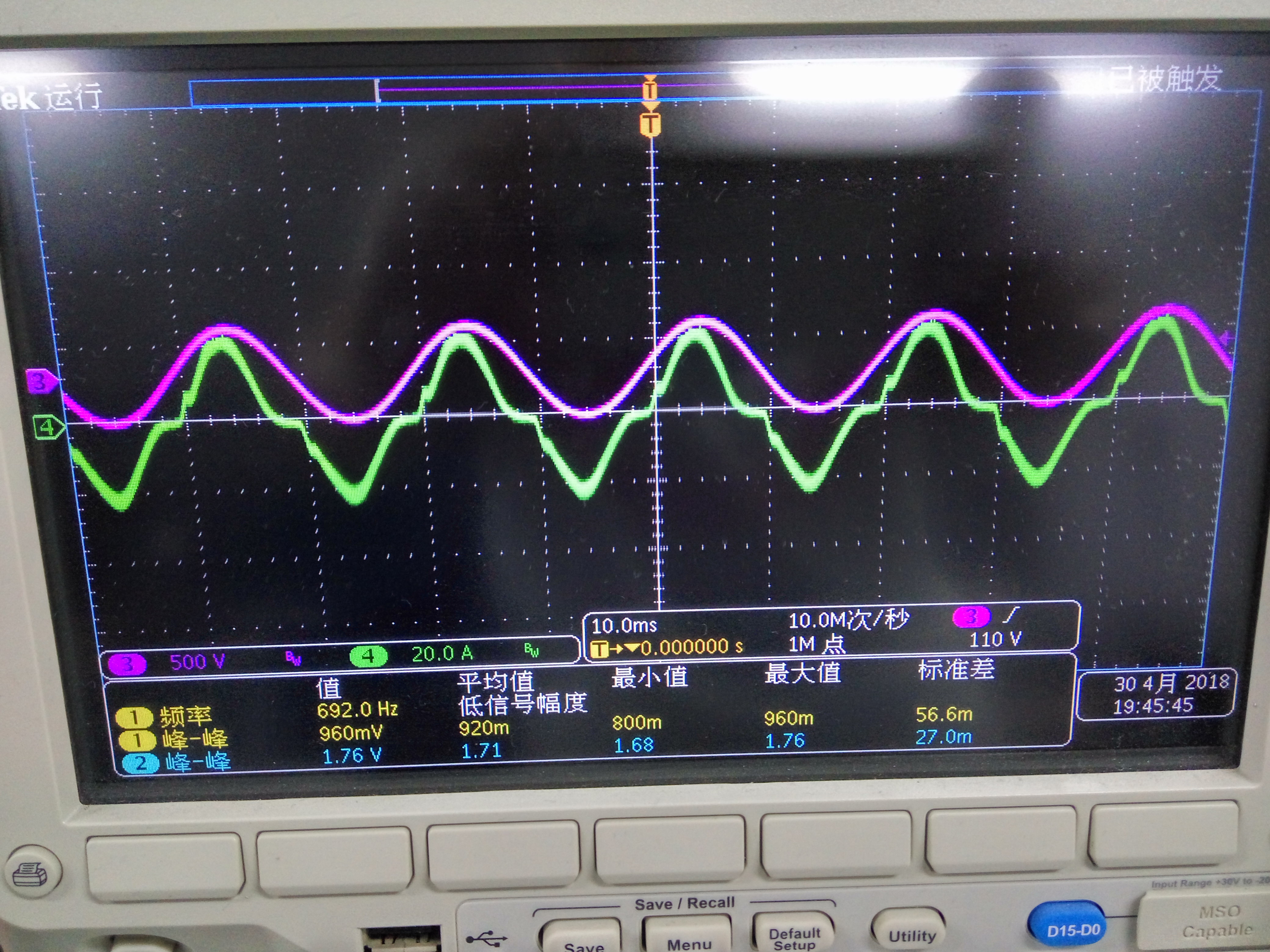 参考例程BLPFC,做了一个基于F28035的4000W的无桥PFC。输入电流波形,很严重的一个台阶,而且还有些不对称,输入电流稍微超前。