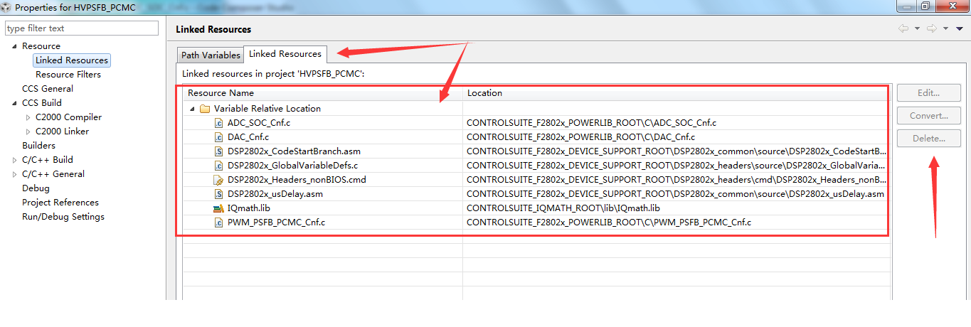 CCS6里面项目属性里Linked Resourses的文件路径是怎么加进去的?在属性里每个选项都看了就是找不到进入的路径,