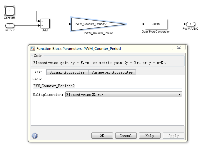 28069的板子,想生成svpwm模块,simulink搭好的模型,出来的TaTbTc应该是导通时间(马鞍形波),如何把它转换为epwm寄存器的值啊?