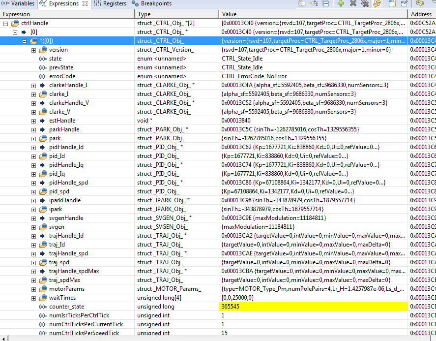 双马达例程中 CTRL_Handle ctrlHandle[2] 仿真中 无法看到数据,如何可以看到?