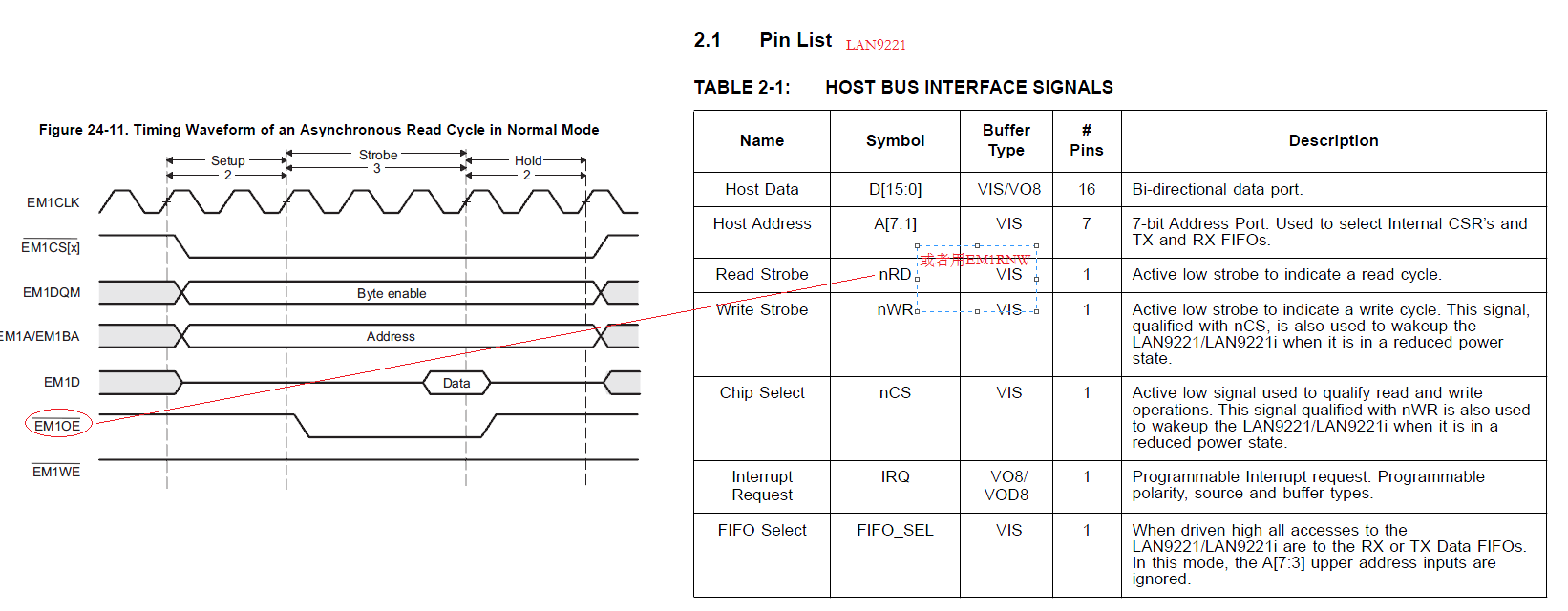 我在设计28377s与LAN9221连接时,LAN9221有nRD信号,我是连接用EM1RNW,还是用EM1OE?