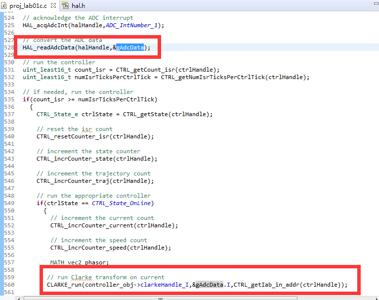 下面是电流读取代码到clarke部分;下面是Lab 1C 。