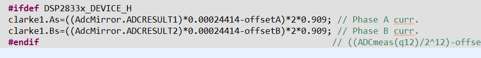 我想请教一个TI给的PMSM中无位置程序中,电流进行电流采样时,将采样值进行标幺化也即转换出来的值范围为(-1,1),但是直接赋值给clarke1.As或者clarke1.Bs时,此时clarke1.As或者clarke1.Bs定义的格式为定点格式,我的疑问是能直接这样赋值转换吗??小菜鸡一枚,希望得到工程师的解答,不胜感激!!!