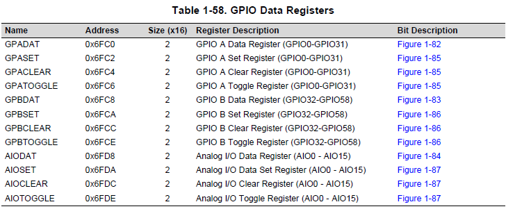 gpioBaseAddr = (Uint32 *)&GpioDataRegs;