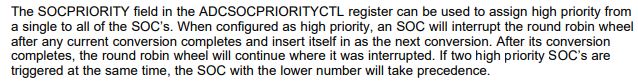 我目前正在使用TMS320F28035的ADC进行多通道采样。我想请教一下,如果我ADC触发信号触发ADC转换后,如果在下一次ADC触发信号到来时,我的ADC并没有转换完,那么ADC应该如何进行?是继续转换ADC然后转换完成后,已经挂起的触发信号来触发ADC转换。还是继续ADC转换转换完成后忽略掉已挂起的触发信号。然后等待下一次触发信号到来后再触发ADC转换。谢谢!