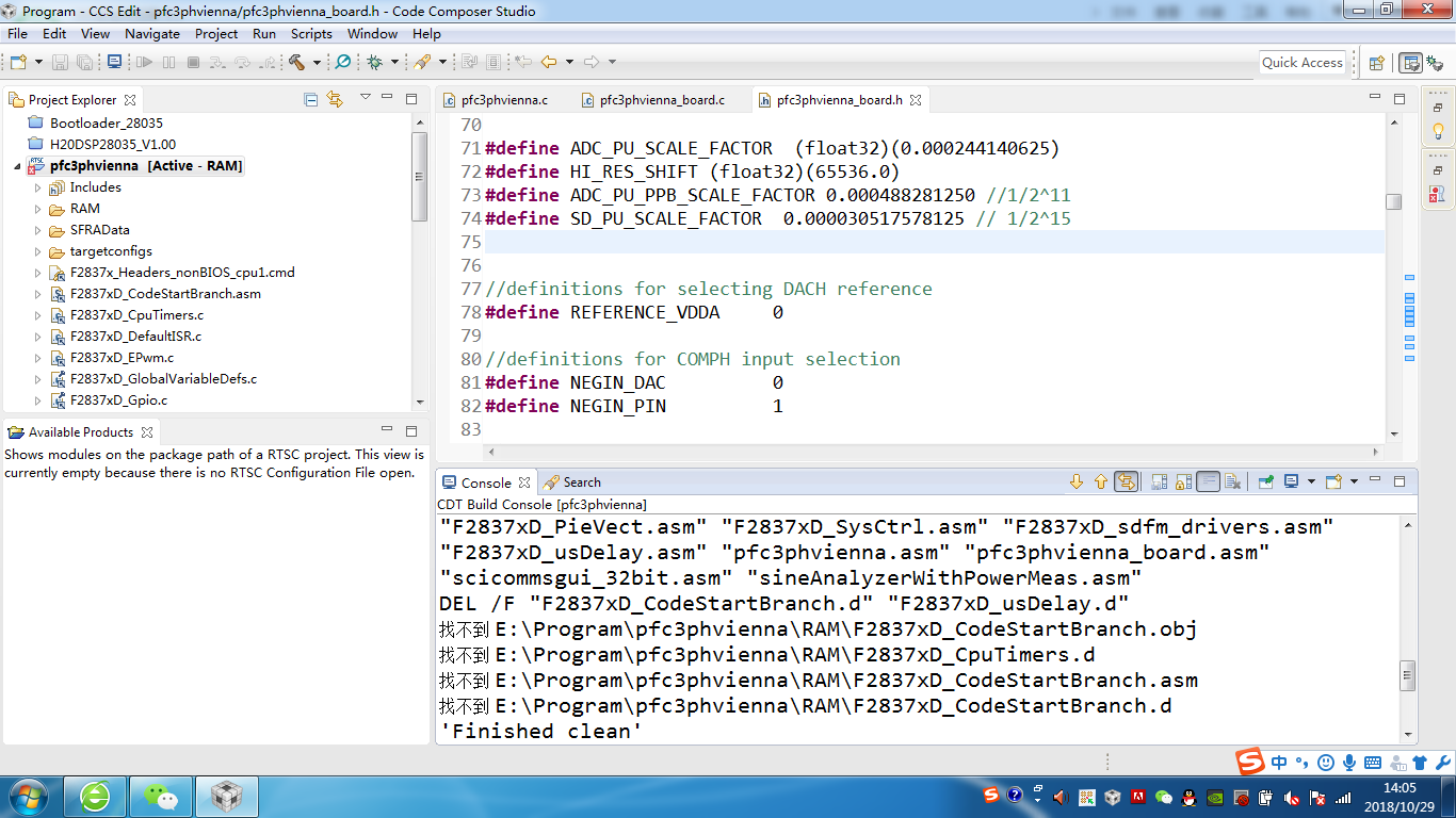 在controlSUITE中加载pfc3phvienna工程提示找不到指定文件,导致无法编程通过也不知道该怎么处理,有知道的小伙伴告知一下,以下是编译器提示内容: